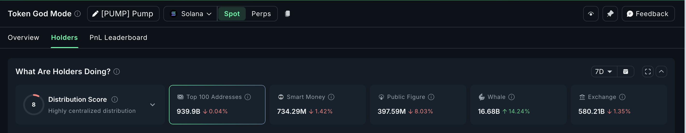 Во время этой коррекции активность китов значительно возросла. За последнюю неделю они добавили примерно 2,10 млрд токенов PUMP, увеличив свои общие владения до 16,68 млрд.
