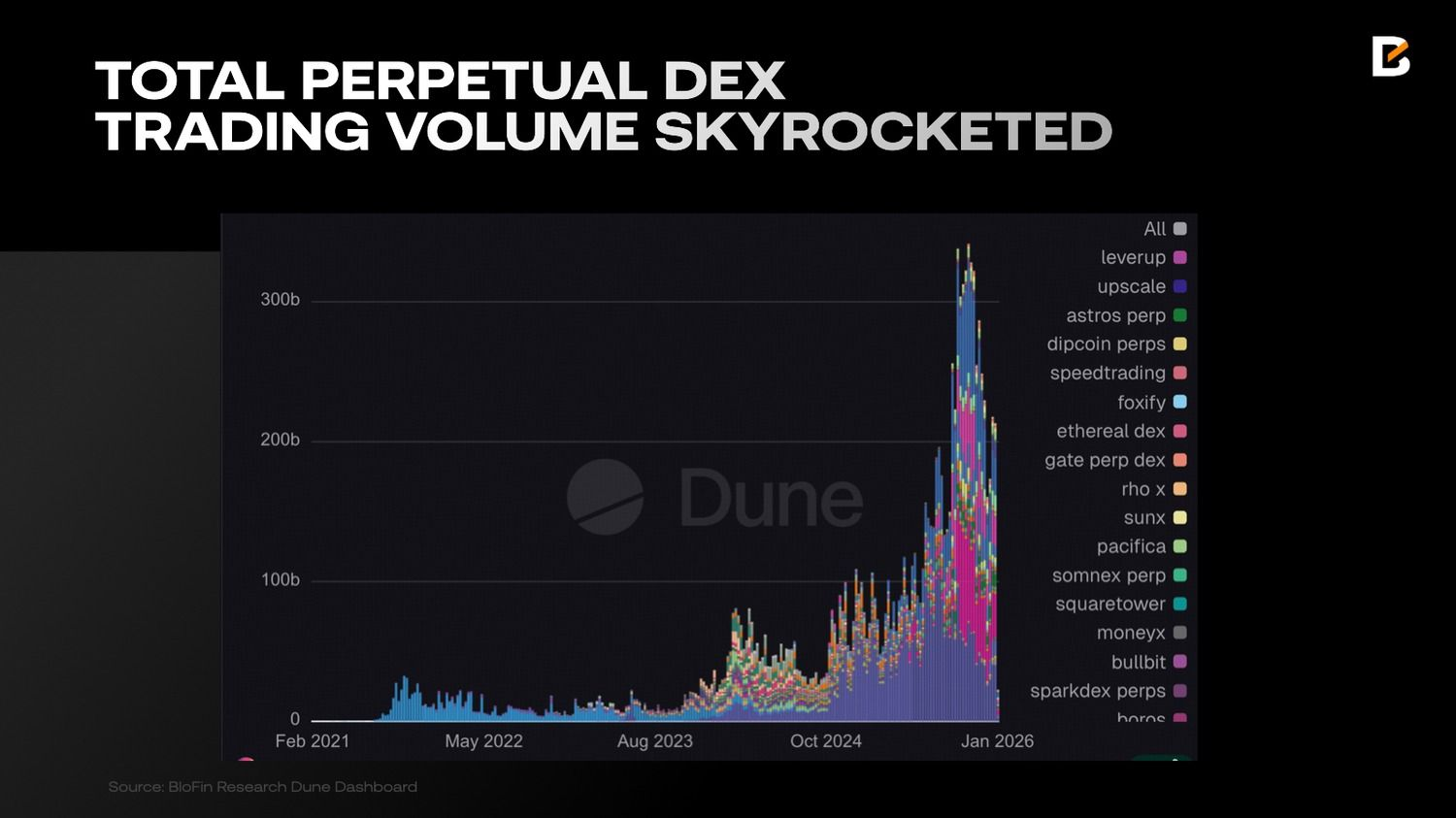 Еще одной структурной точкой роста в 2026 году станет расширение рынков бессрочных контрактов на реальные активы. По мере расширения перечня базовых инструментов деривативы на реальные активы начинают закрывать пробелы традиционных рынков. Запуск Hyperliquid Ventuals в рамках HIP-3, ориентированный на торговлю до IPO, демонстрирует этот тренд, устраняя отсутствие бессрочных контрактов на фондовом рынке. Распространение таких инструментов на акции и другие категории реальных активов, вероятно, станет одним из ключевых драйверов роста торговых платформ и изменит архитектуру глобальных деривативных рынков.