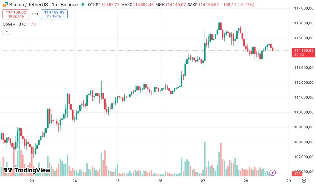 На момент написания цифровое золото торгуется около $114 100.