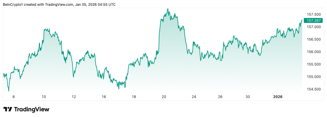 В полдень в Токио курс иены составлял около 157,15 за доллар, что очень близко к порогу в 160 долларов, который, по мнению участников рынка, может привести к вмешательству правительства.