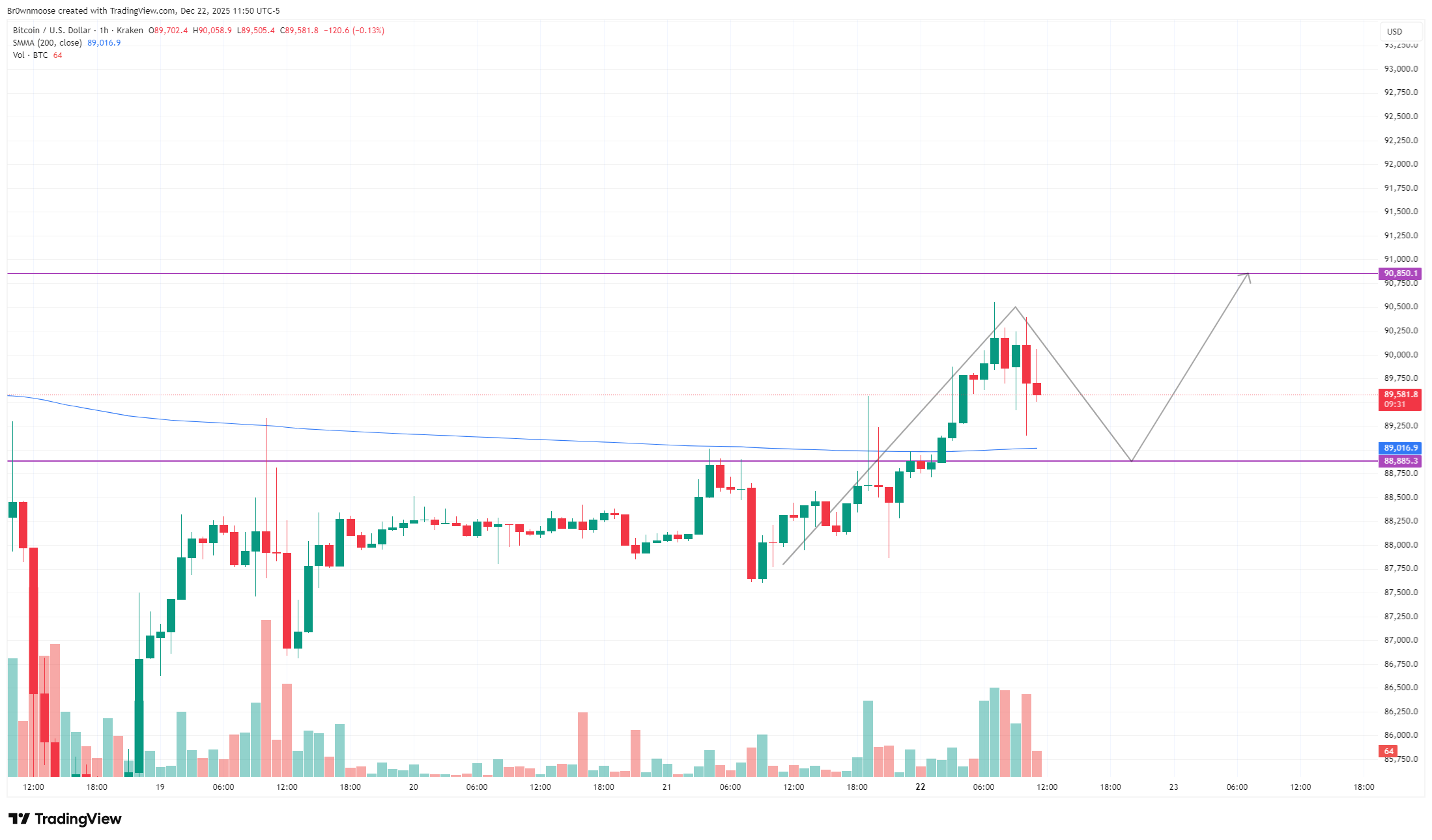 На фоне кажущейся безнадежности трейдер Moose фиксирует равные пулы ликвидности в районах $88 700 и $90 700. Его план заключается в ожидании ретеста уровня $88 800 с последующей целью фиксации прибыли около $90 800.