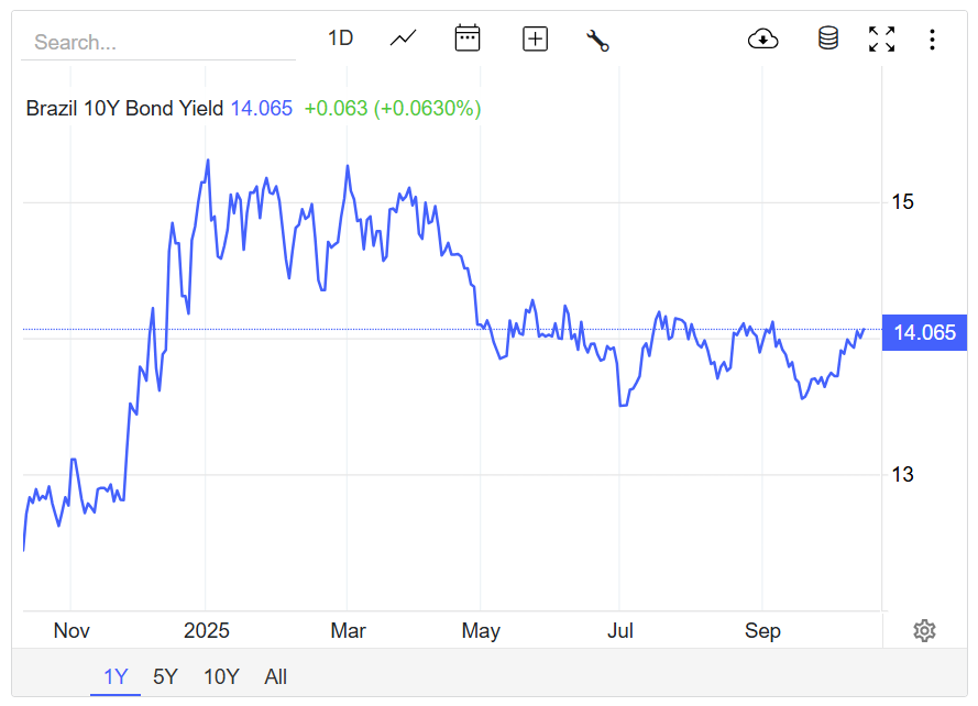 Согласно данным TradingEconomics, доходность 10-летних государственных облигаций Бразилии составляет около 14% после недавнего пика около 15,2%. Это сделало Бразилию одним из самых привлекательных рынков суверенных облигаций в мире. При этом иностранные инвесторы часто сталкиваются с бюрократией, сложными налоговыми правилами и трудностями при конвертации валюты при попытках прямых инвестиций.