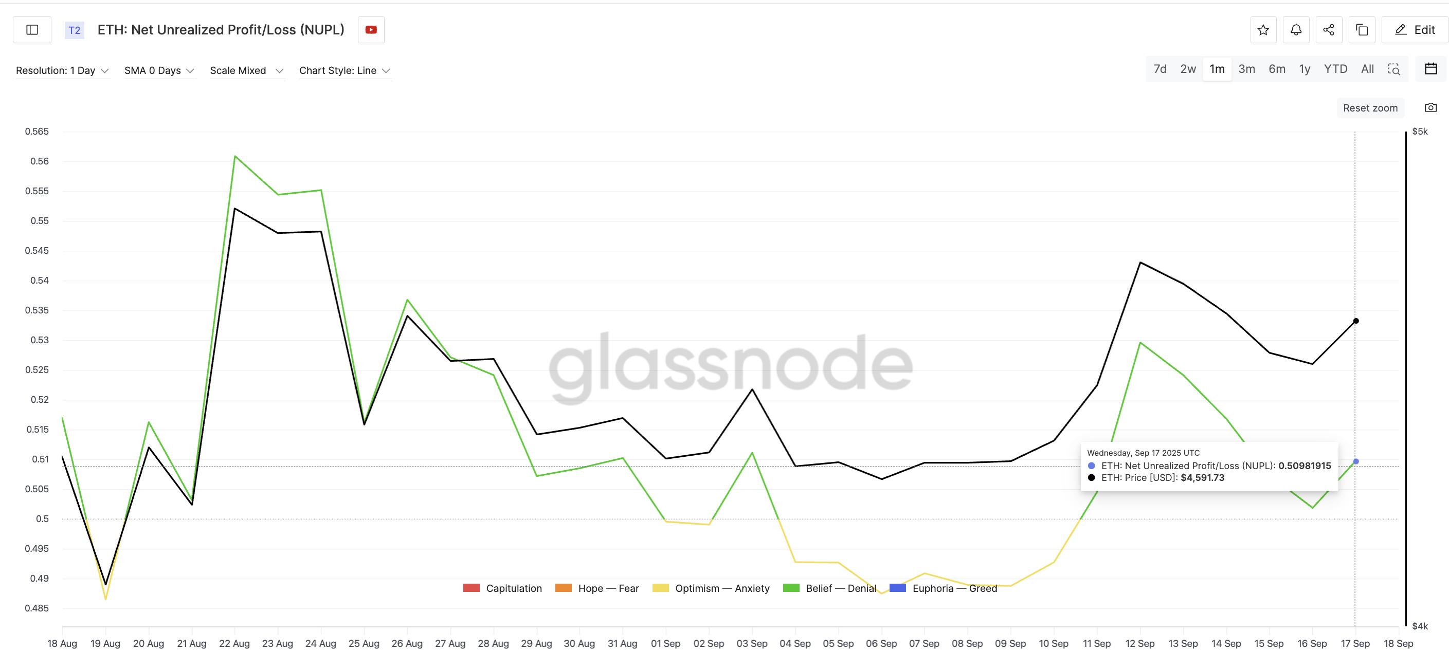 Показатель NUPL для Ethereum все еще в зоне веры: Glassnode
