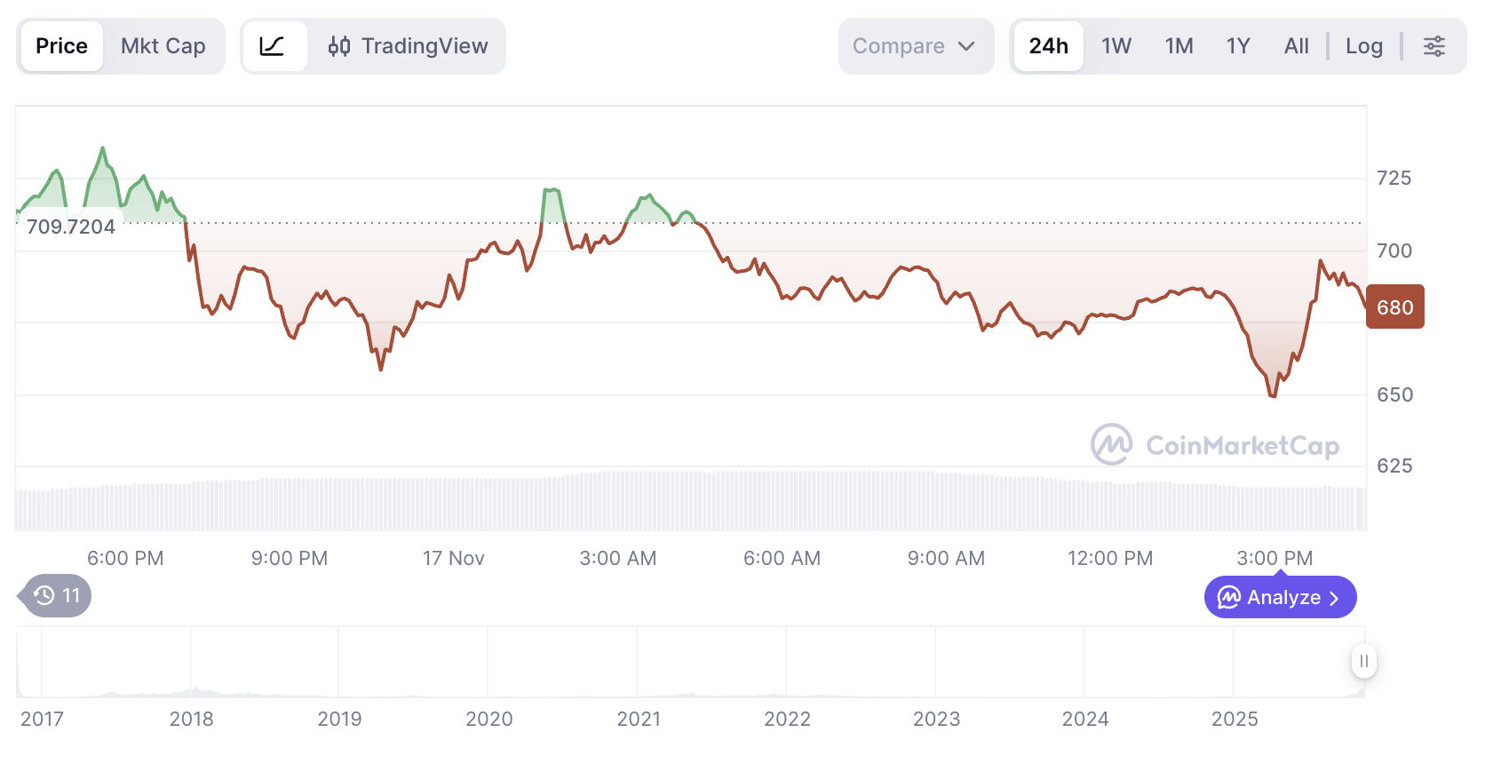 На момент публикации Zcash торгуется по $680, упав за последние сутки на 6,5%, по данным Coinmarketcap. Рост за месяц — 222%.