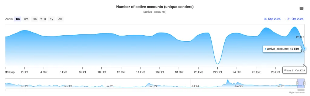 За аналогичный период количество активных адресов сократилось с более чем 25 000 до 12 819.