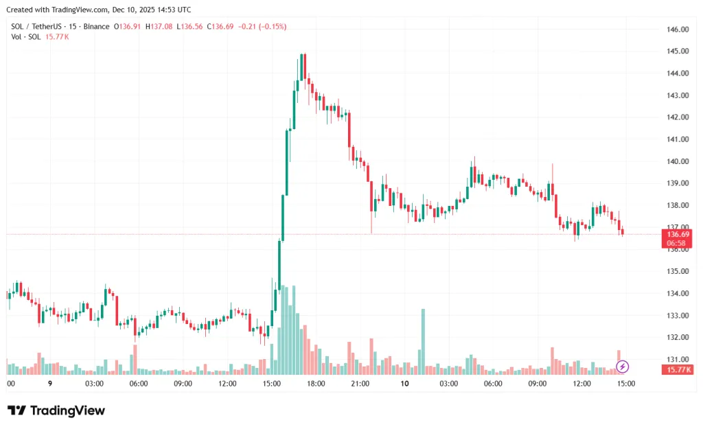 15-минутный график SOL/USDT биржи Binance. Источник: TradingView.