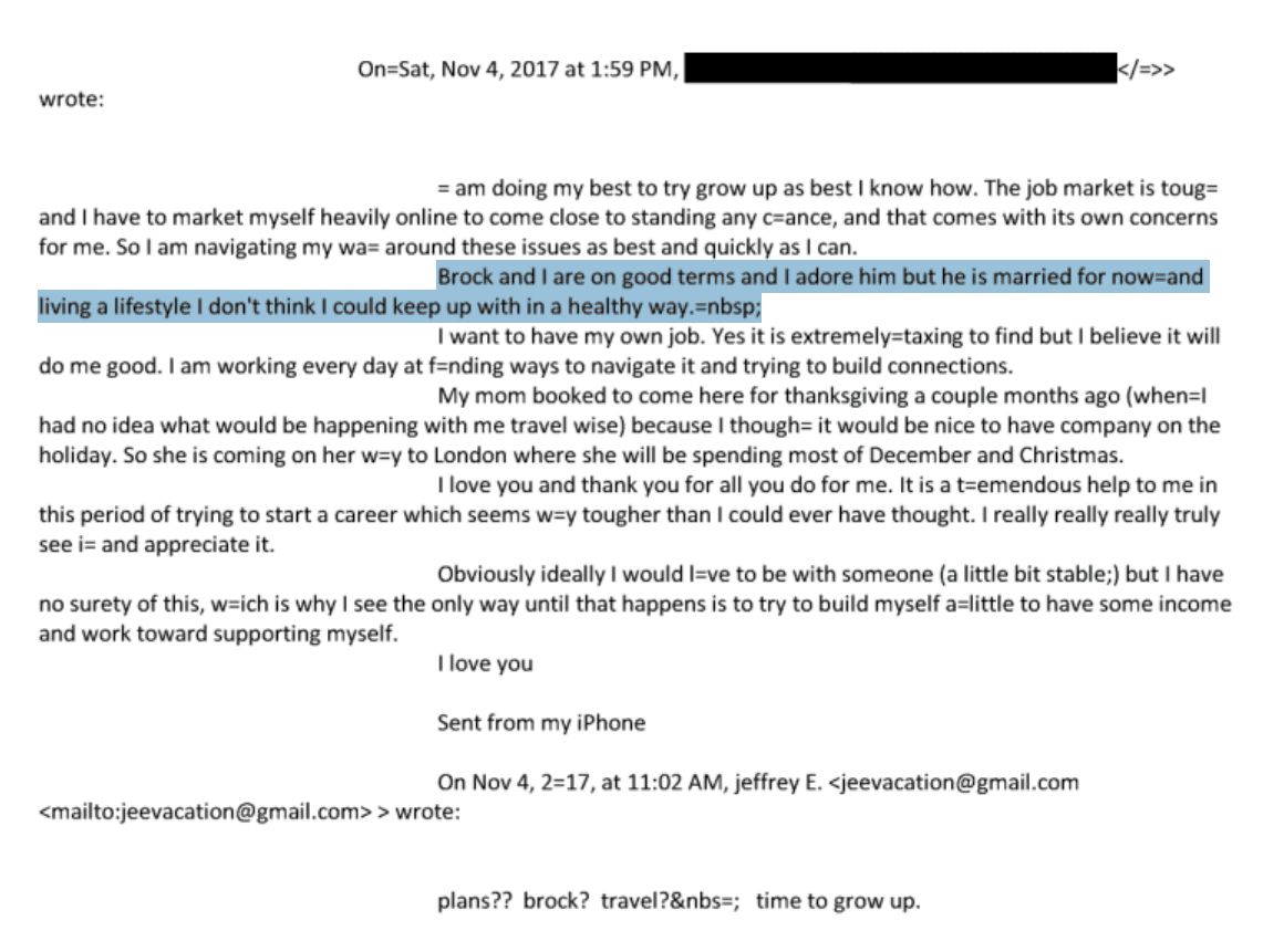 В письмах обсуждались деловые контакты, поездки и личные темы. Среди прочего разговор касался времяпрепровождений с женщинами, романтических отношений, криптоактивов и путешествий.