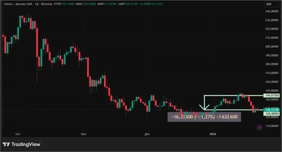 Отрицательный тренд SOL объясняется общим негативом, охватившим крипторынок на фоне новостей вокруг Гренландии и поведения Трампа. Также стоит отметить недельное снижение открытого интереса по фьючерсам на 15% до $7,53 млрд. Глобальное падение спроса на деривативы на Solana продолжается с конца сентября прошлого года.