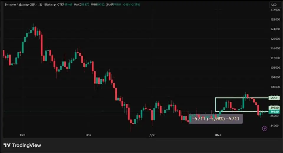 С 16 по 23 января 2026 года биткоин снизился на 5,98%. Только в последние три дня первая криптовалюта предприняла робкие попытки роста. Их оказалось недостаточно даже для того, чтобы вернуться к важной психологической отметке $90 000.