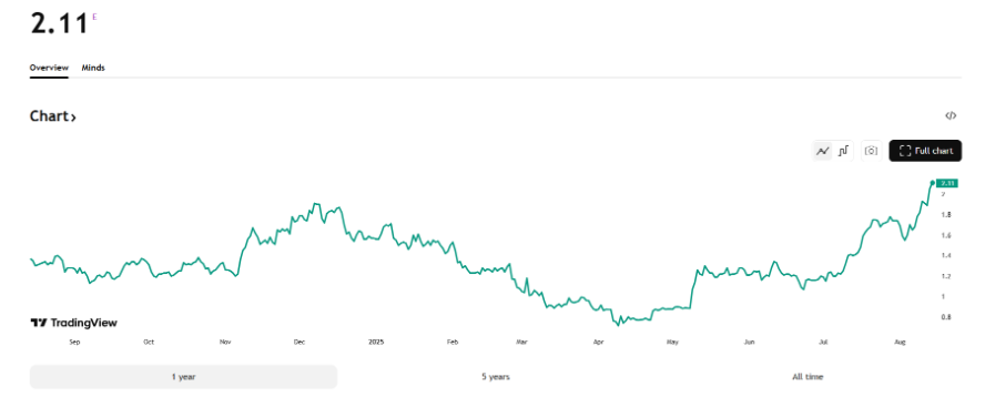 В настоящее время коэффициент MVRV достиг самого высокого уровня за 2025 год в 2,1 пункта, что может привести к давлению со стороны продавцов, если некоторые «киты» решат повысить свою среднюю цену. ETH по-прежнему активно торгуется, при этом часть предложения по-прежнему используется для краткосрочных свопов.