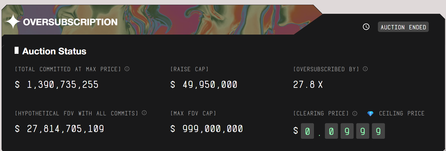 MegaETH открыл свой токеновый аукцион в прошлый понедельник и превысил подписку более чем в 27 раз к моменту закрытия. Источник: MegaETH