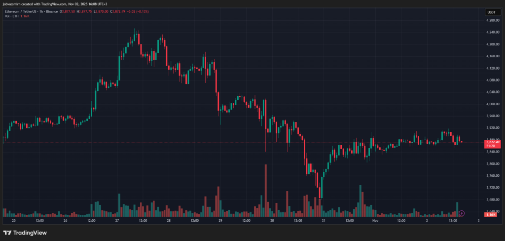 Ethereum тоже не удержался выше $4000. За семь дней монета рухнула с $4200 до $3800 — на 9,5%.