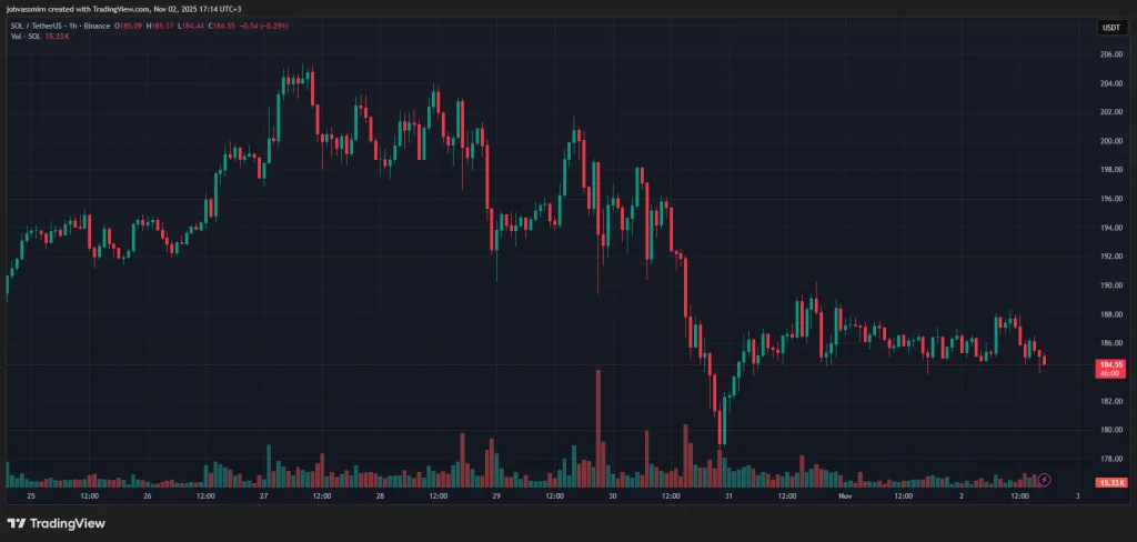 Тем не менее курс SOL не отреагировал на успех фондов. На момент написания актив торгуется около $185.
