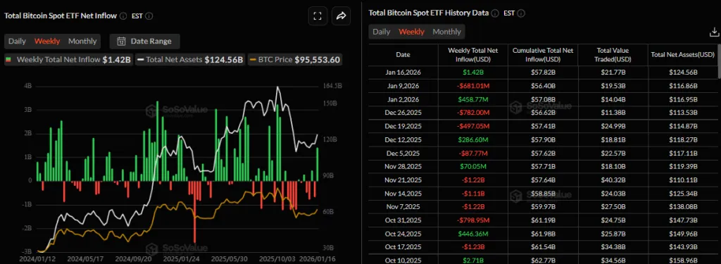 Кроме того, стабилизировалась динамика крипто-ETF. Биржевые фонды на основе биткоина привлекли $1,42 млрд, а Ethereum — $479 млн.