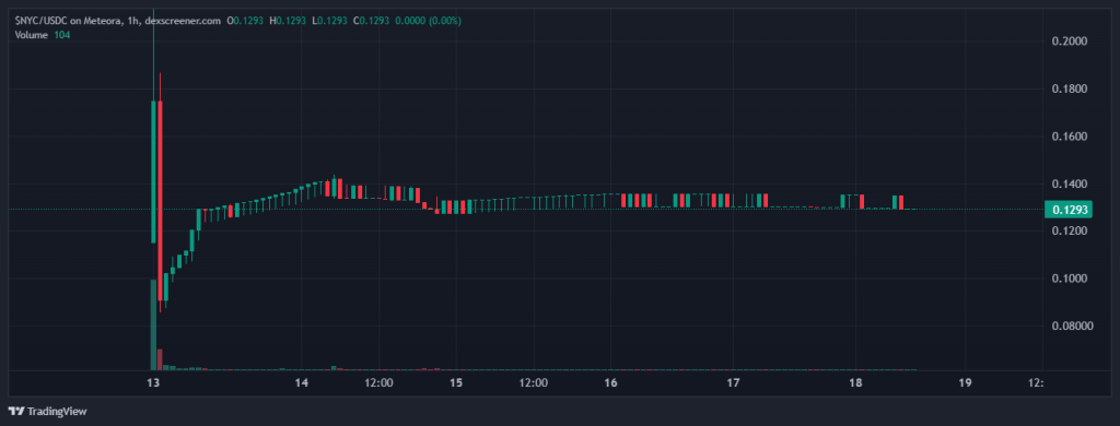 15-минутный график NYC/USDC биржи Meteora. Источник: DEXScreener.