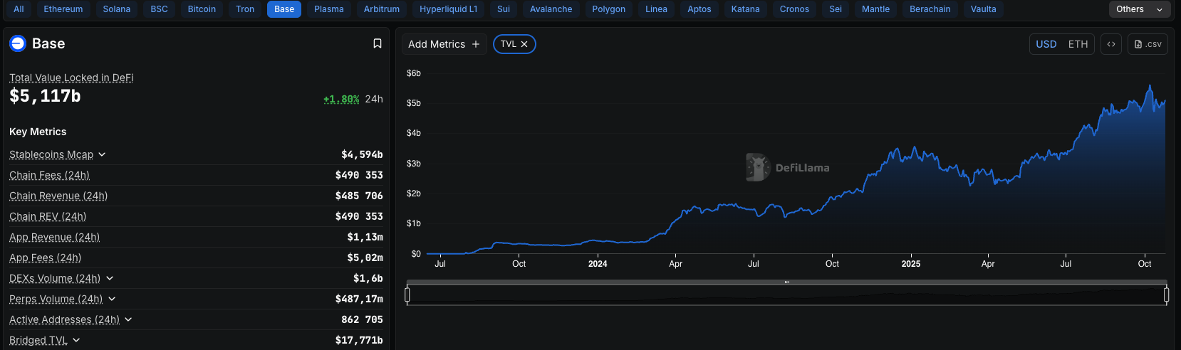 TVL экосистемы на базе Base. Источник: DeFi Llama.