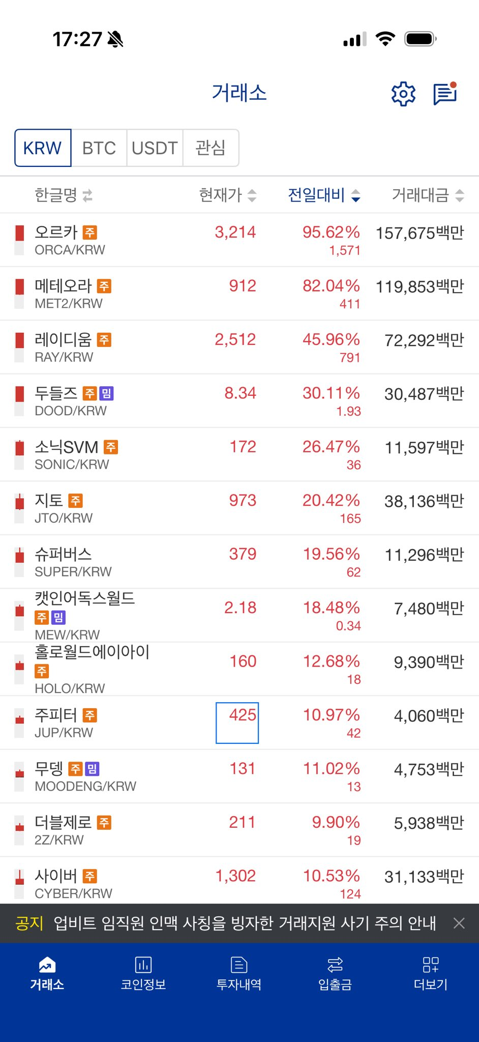 Замкнутая структура торгов усиливает любое движение. Ки Ён Чжу показал, что многие альткоины внутри Upbit демонстрируют заметный рост.