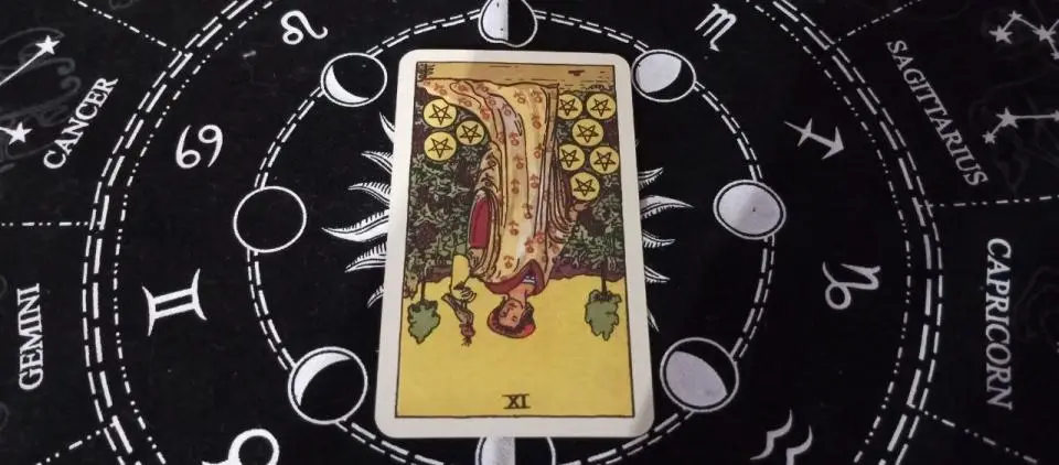 Девятка Пентаклей в перевернутом положении
