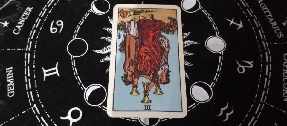 Выпала тройка Кубков в перевернутом положении.
