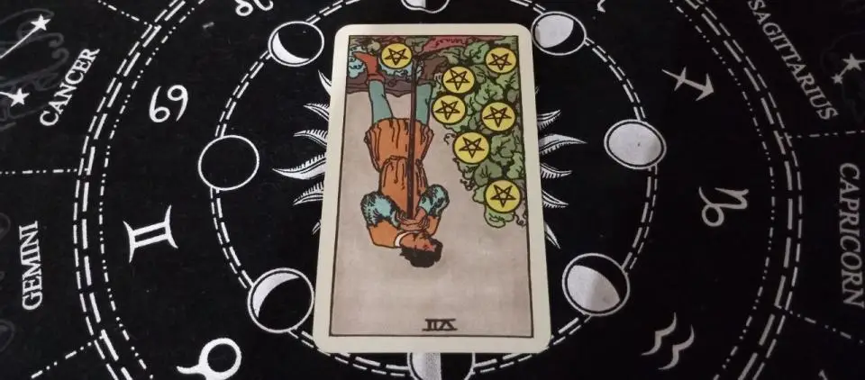 Семерка Пентаклей в перевернутом положении
