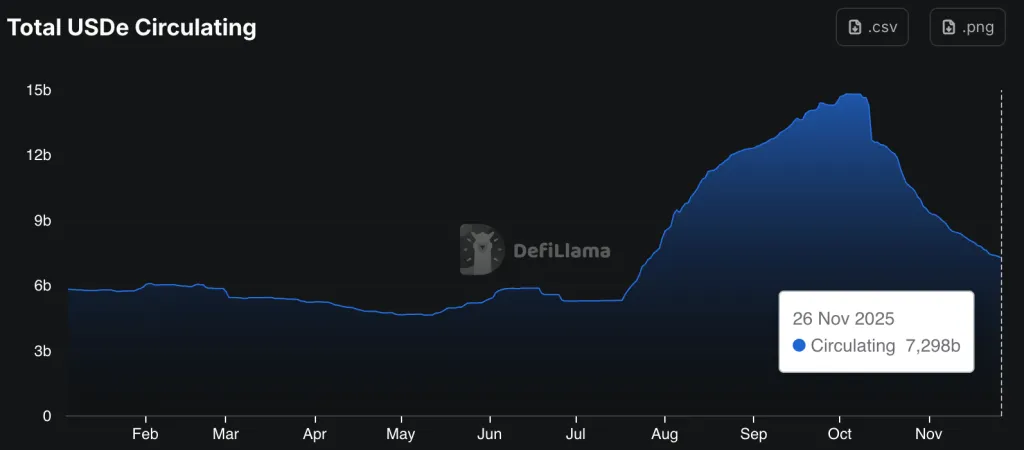 Рыночная стоимость синтетической «стабильной монеты» USDe от проекта Ethena обвалилась на 50% за месяц — с $14,8 млрд в октябре до текущих $7,2 млрд.