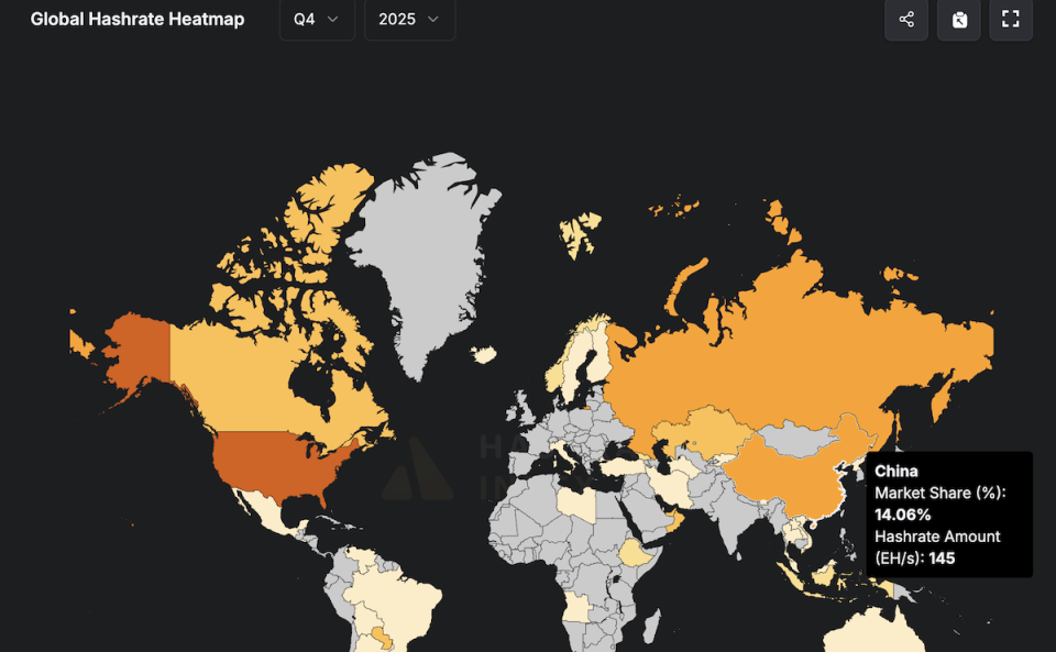 Более 95% оборудования для майнинга биткоинов на базе ASIC производятся китайскими компаниями, такими как Bitmain, MicroBT и Canaan. Аналитики Miner Weekly, опираясь на данные нескольких анонимных источников в цепочке поставок ASIC-манеров, предположили, что одним из вероятных мест сосредоточения подпольной добычи биткоинов является Синьцзян-Уйгурский автономный район. Этому способствует относительная изоляция региона и обилие доступных энергетических ресурсов при цене $0,03–0,04 за кВт·ч. Еще до введения в 2021 году запрета на майнинг регион был одним из центров майнинга биткоинов в КНР.