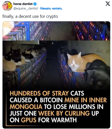 Китайский криптопредприниматель потерял несколько миллионов долларов после того, как почти 200 кошек поселились на его майнинговой ферме и испортили оборудование.