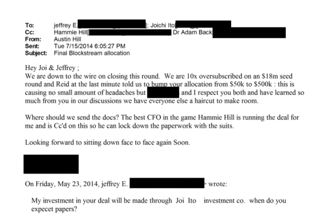 - Blockstream и ее руководство фигурируют в переписке финансиста.