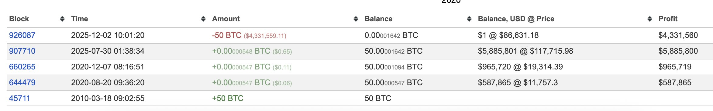 На фоне этого напряжения активизируются ранние держатели биткоина. Их переводы подчеркивают, что неопределенность ощущают не только текущие операторы, но и участники рынка с длинной историей.