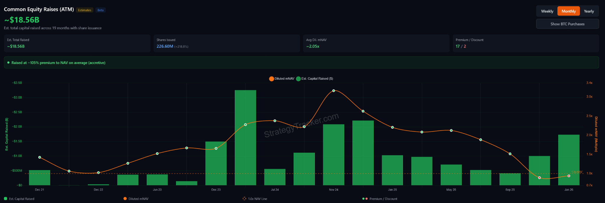 Несмотря на давление, до кризиса платежеспособности ситуация не дошла. За последние два года MicroStrategy привлекла около $18,6 млрд за счет размещения акций, в основном с премией к чистым активам.