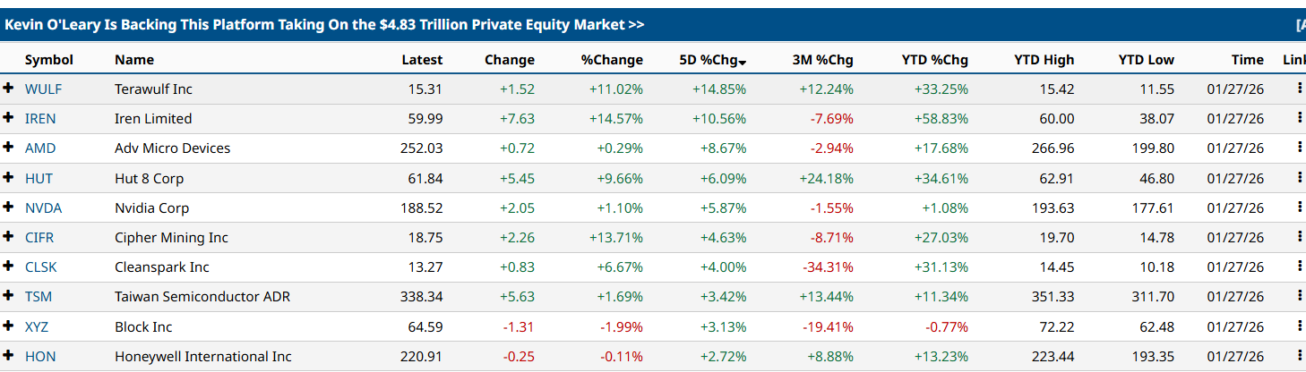 По данным Barchart, за последние 24 часа ценные бумаги TeraWulf подорожали примерно на 11%, Iren Limited — на 14%, Cipher Mining — на 13%.