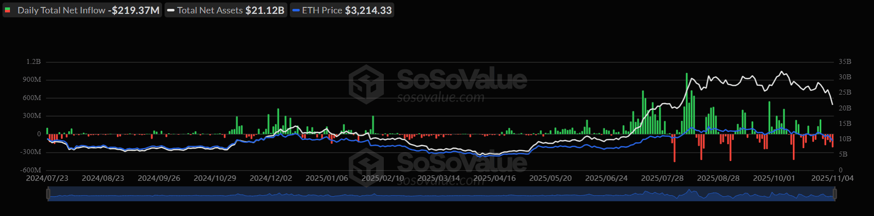 • 4 ноября спотовые биткоин- и Ethereum-ETF отметились оттоком капитала.