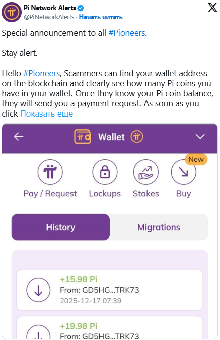 Всего было выявлено несколько скоординированных атак. В одном из широко обсуждаемых случаев в декабре 2025 года только один мошеннический кошелёк получил более 838,000 PI. По оценкам, за год пользователи потеряли миллионы токенов.