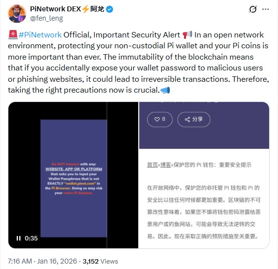 Команда Pi Network выпустила срочное предупреждение о безопасности для пользователей по всему миру. На фоне перехода к открытой основной сети разработчики призвали участников быть особенно внимательными и защищать свои кошельки от мошенников.