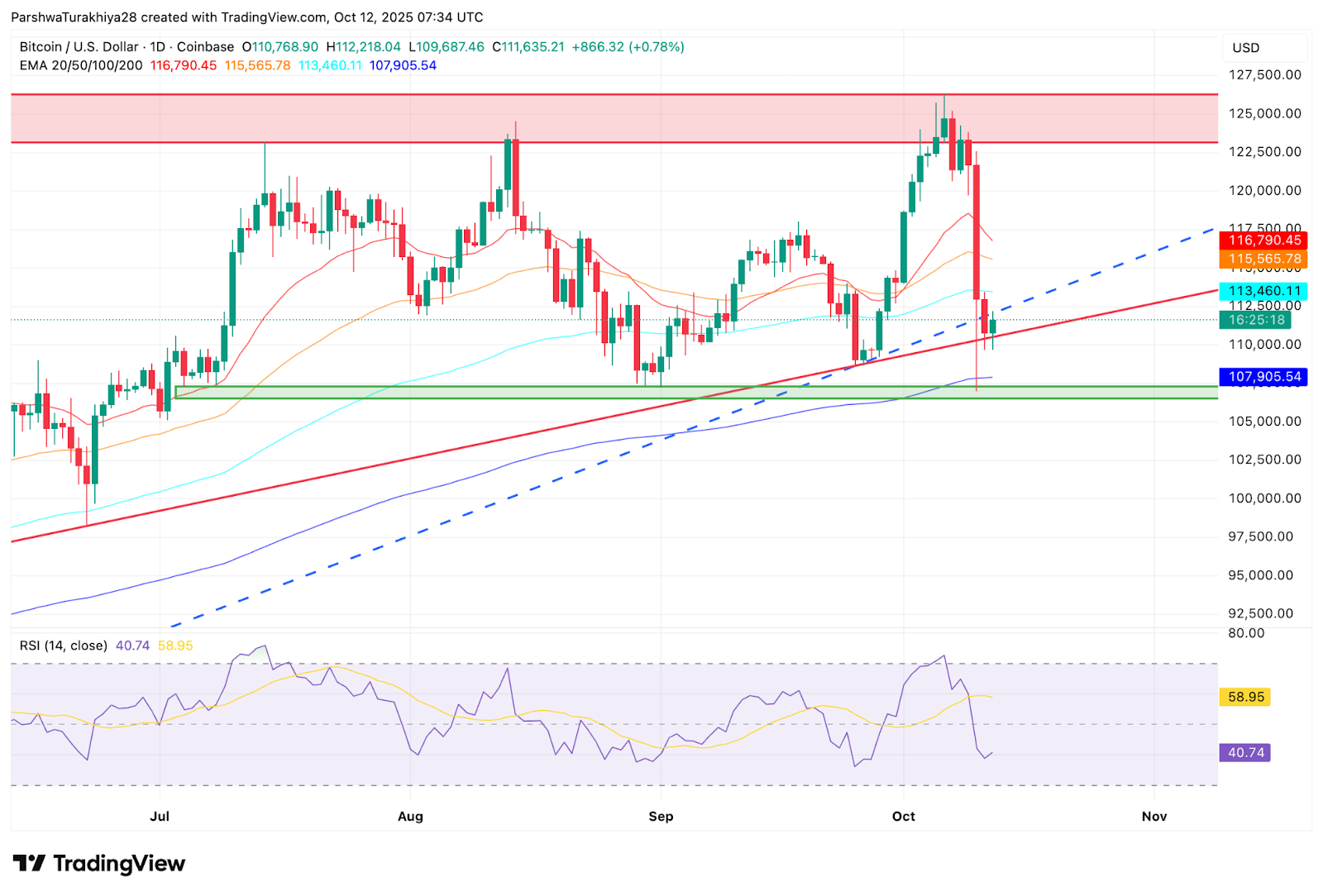 | Ключевая поддержка | $110,000 / $107,900 | Линия тренда и 200 EMA |