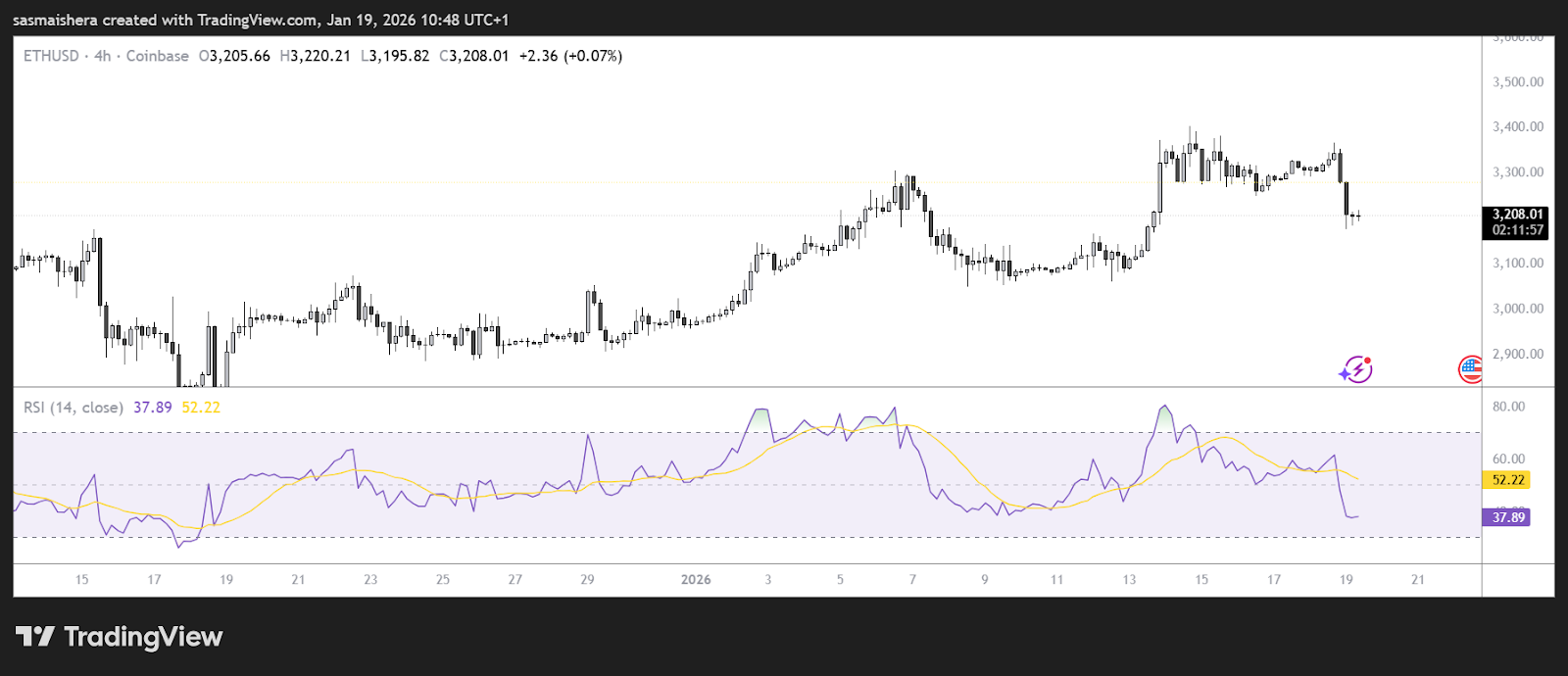 С другой стороны, $3,000 — это немедленное обеспечение, которое покупатели должны защищать. Ниже этого — 2 950–2 980 долларов в качестве следующего буфера, за ним следует основная зона спроса — 2 780–2 800 долларов. Техническая структура указывает на то, что $ETH консолидируется после резкого импульса, и волатильность, вероятно, скоро увеличится.