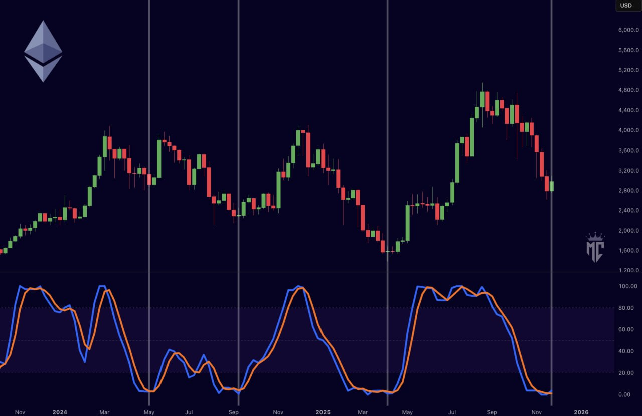 30 ноября популярный в Х аналитик Mister Crypto отметил, что в настоящий момент эфир «очень перепродан». Он заметил сходство с прошлыми паттернами альткоина, когда ему удавалось отскакивать от таких ценовых уровней.