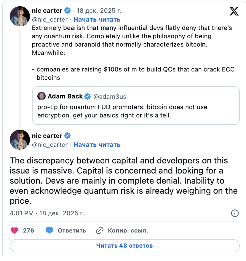 Дискуссия показывает нарастающее противоречие между инвесторами и разработчиками. Ник Картер, партнер Castle Island Ventures, выразил суть спора в своем декабрьском посте.