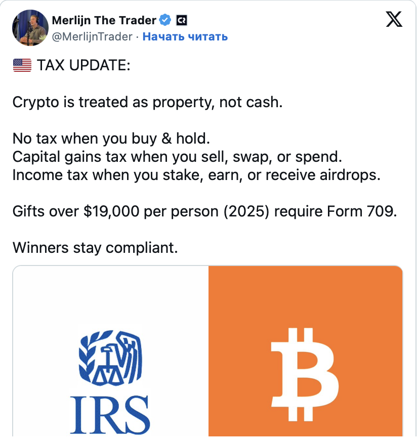 Налоговая служба США (IRS) классифицирует цифровые активы как имущество. Ведомство требует обязательного декларирования доходов и прибыли от прироста капитала. Это касается сделок купли-продажи, оплаты услуг, стейкинга, аирдропов и других операций.