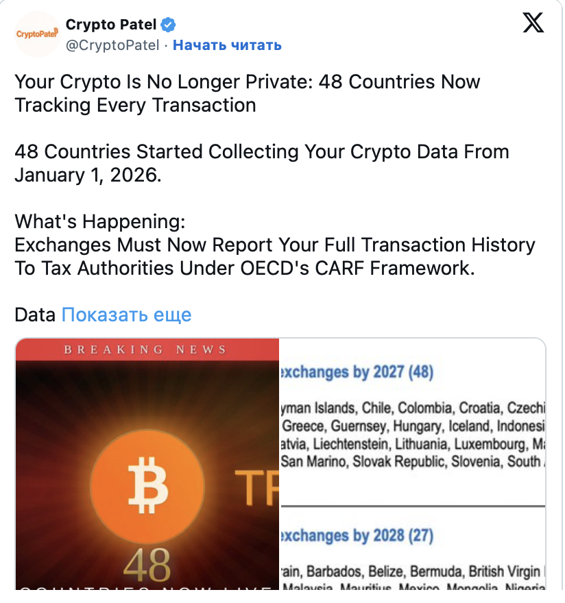 2026 год стал поворотным моментом в международном регулировании криптоактивов. С 1 января 48 юрисдикций начали внедрение стандарта CARF. Данный механизм обязывает поставщиков услуг собирать расширенные данные о клиентах и проверять их налоговое резидентство.
