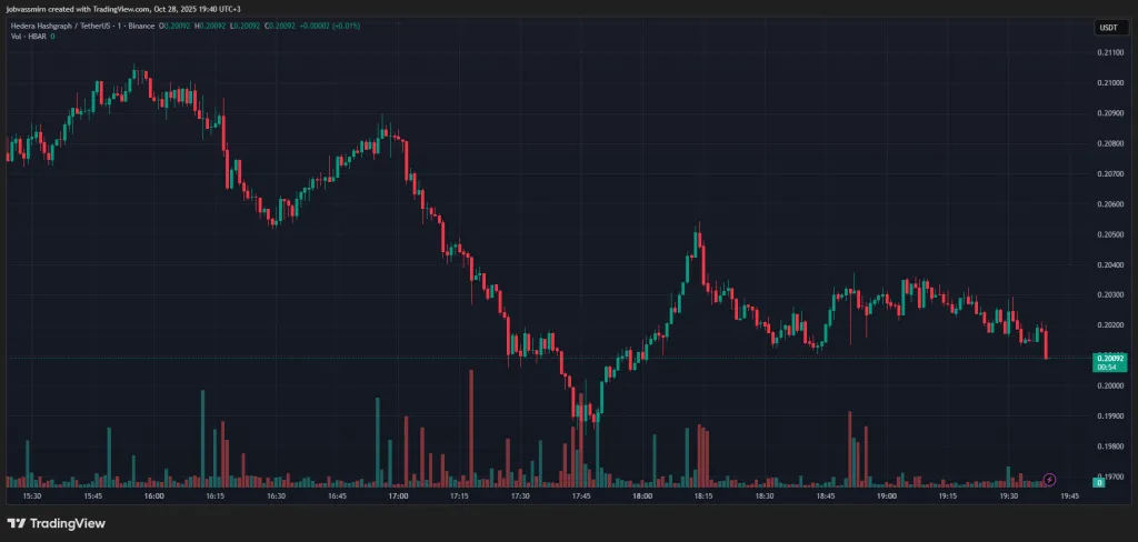 Часовой график HBAR/USDT биржи Binance. Источник: TradingView.