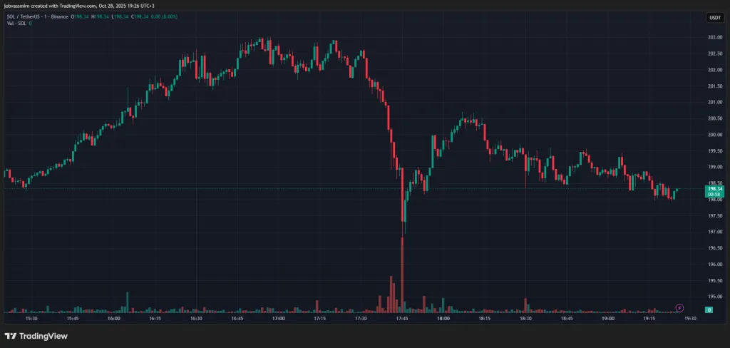 Курс SOL почти не отреагировал на новость. На момент написания монета торгуется чуть ниже $200, за сутки потеряв 1,2%.