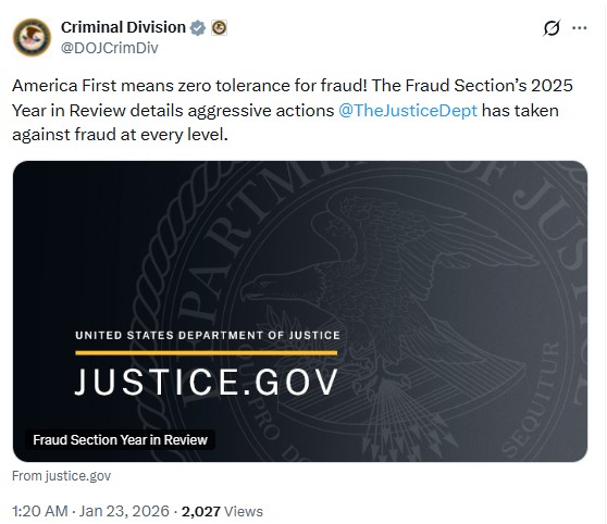 Министерство юстиции США опубликовало отчет за 2025 год, в котором назвало несколько крупных дел о мошенничестве с участием криптовалют. Ведомство отмечает, что цифровые активы все чаще используются в классических преступных схемах, а борьба с такими преступлениями заметно усилилась.