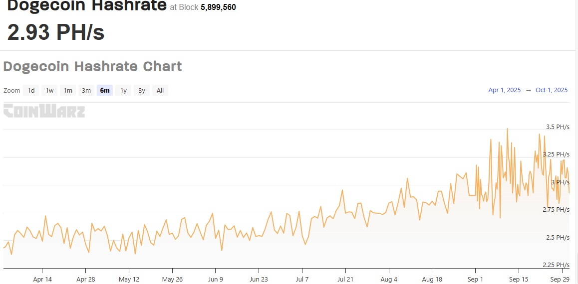 Для цепочки Proof-of-Work, такой как Dogecoin, устойчивый рост хешрейта остается критически важным для сохранения устойчивости сети к потенциальным атакам 51%.