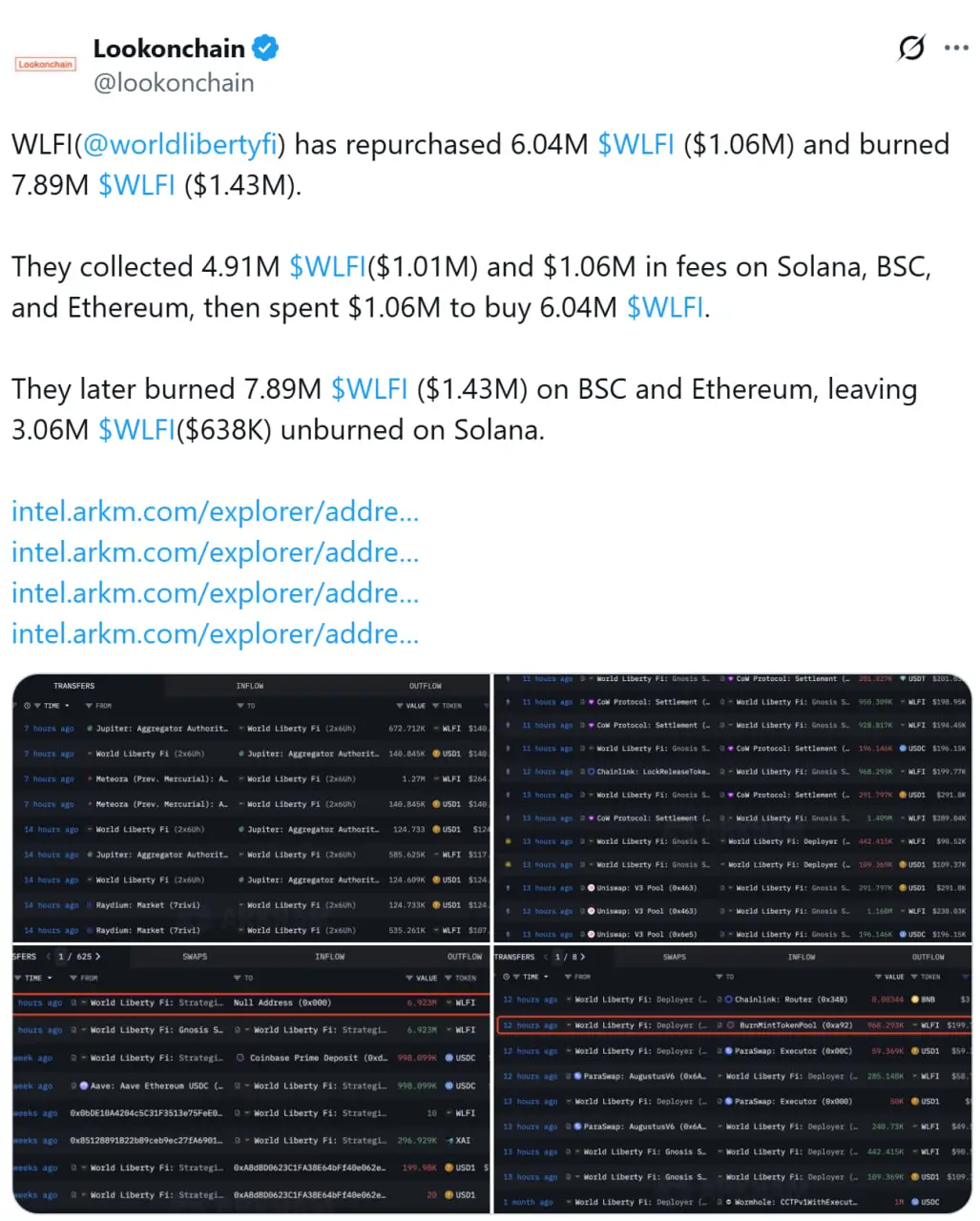 Выкуп и сжигание WLFI. Источник: Lookonchain