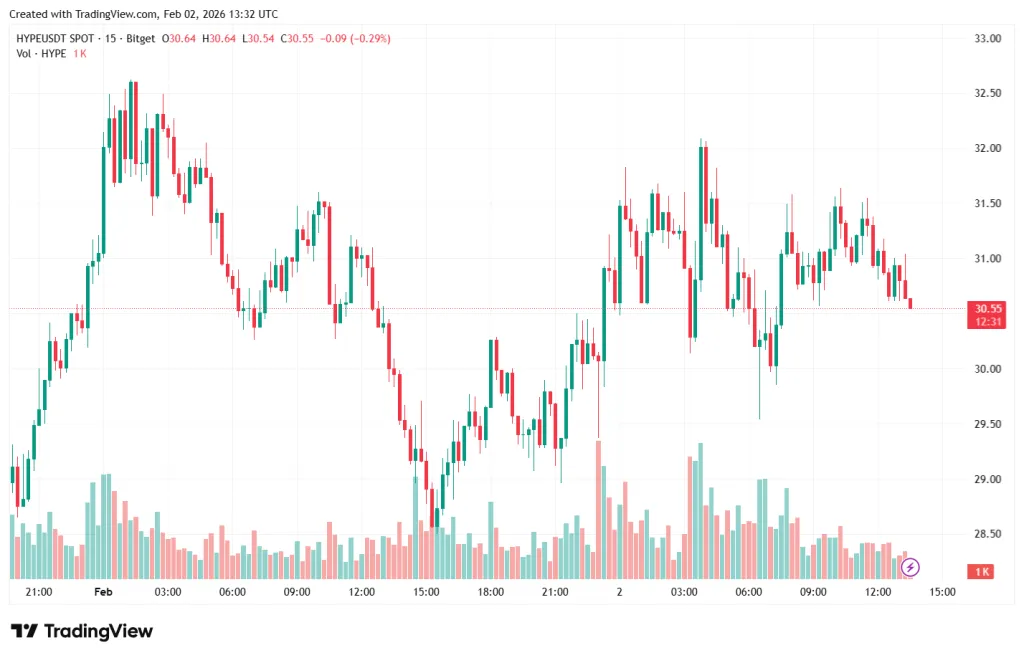15-минутный график $HYPE/USDT биржи Bitget. Источник: TradingView.