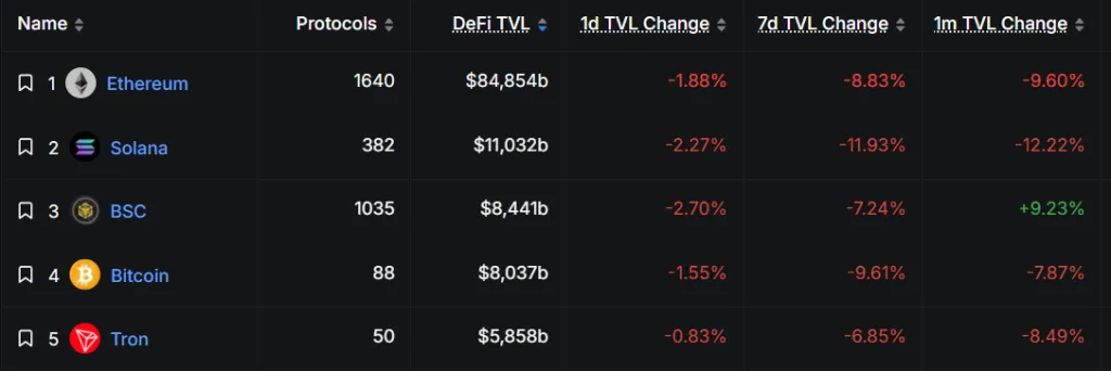 Топ-5 крупнейших экосистем сегмента децентрализованных финансов. Источник: DeFi Llama.