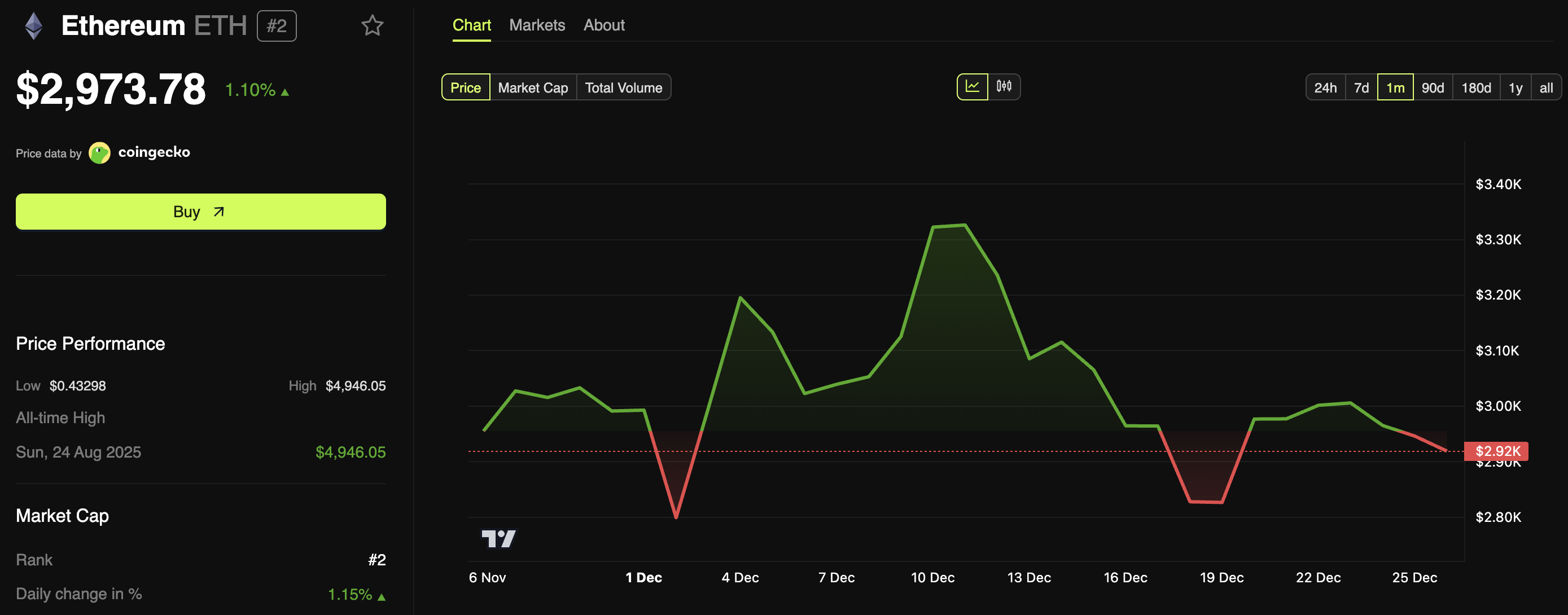 Ethereum завершил в минусе три месяца подряд, при этом в ноябре снижение составило 22.2%. В декабре волатильность актива сохранилась. Несмотря на краткосрочное возвращение к отметке $3000, криптовалюта не смогла удержаться на этом уровне и скорректировалась ниже ключевого порога.