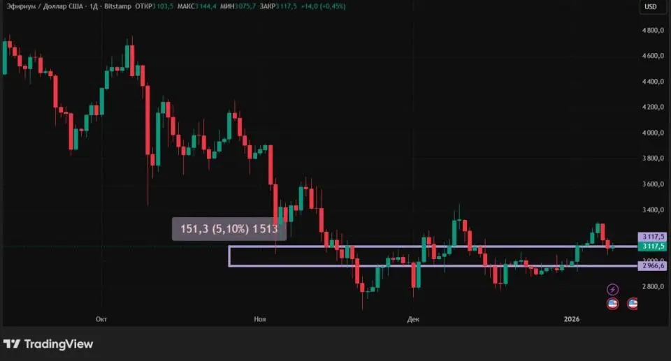 Эфир с 1 по 9 января вырос на 5,1%. 6 января ETH оказался даже на 6% выше. Итого за первые девять дней года вторая по капитализации криптовалюта смогла закрепиться выше важной психологической отметки $3000.